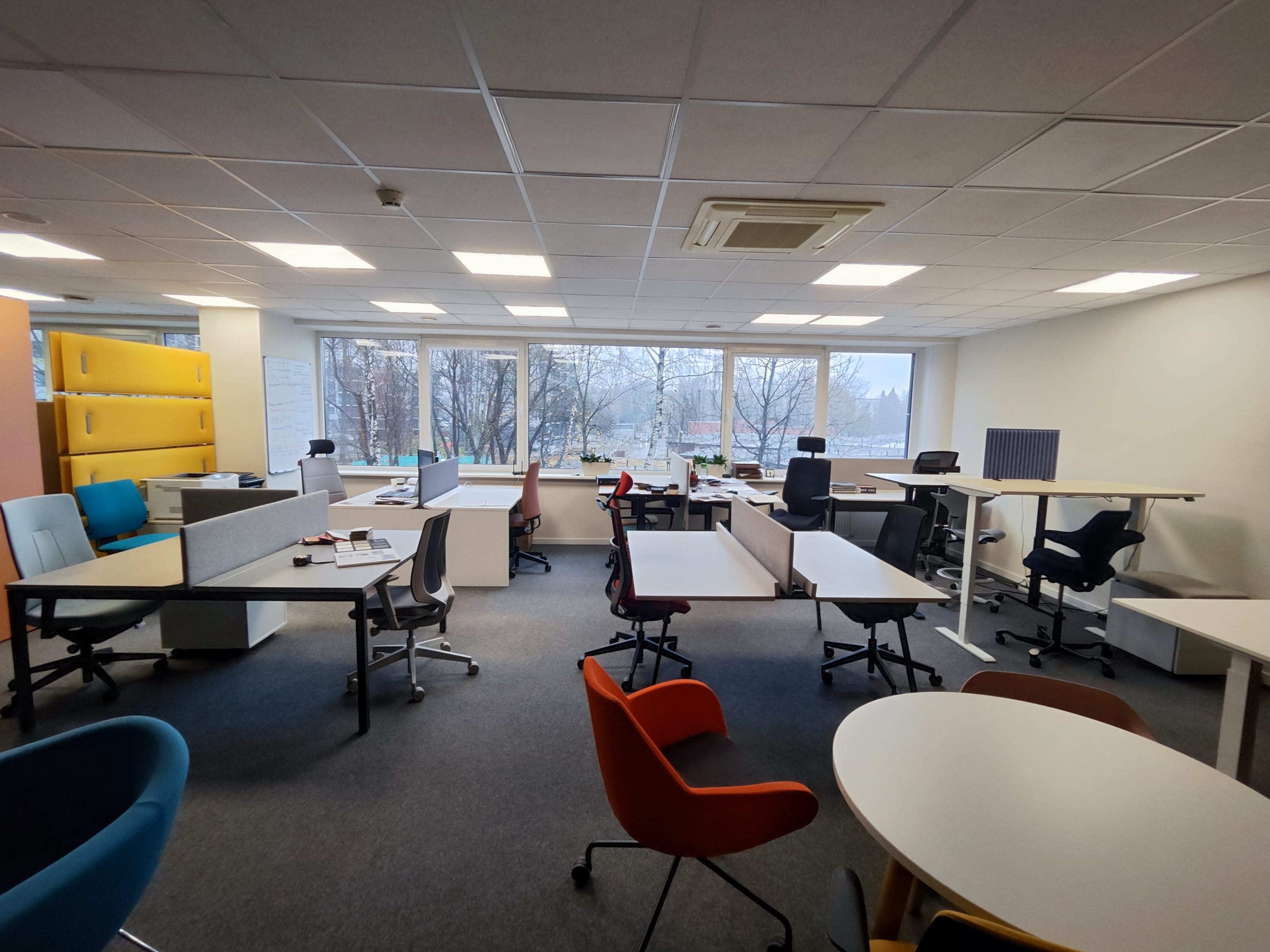 MCITY Astras iznomā 145.50 m² plašas biroja telpas 2. stāvā mūsdienīgā B+ klases biroju ēkas Purvciemā, rajonā ar labi attīstītu infrastruktūru un sabiedriskā transporta pieejamību.